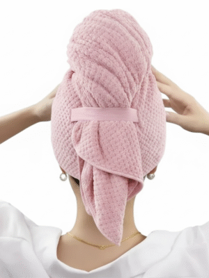 المايكروفايبر تمتص الماء بلطف دون شد أو فرك، مما يحافظ على قوة الشعرة.